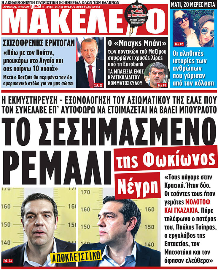 Ακολουθεί το πρωτοσέλιδο της εφημερίδας που προκάλεσε την αντίδραση του ΣΥΡΙΖΑ...