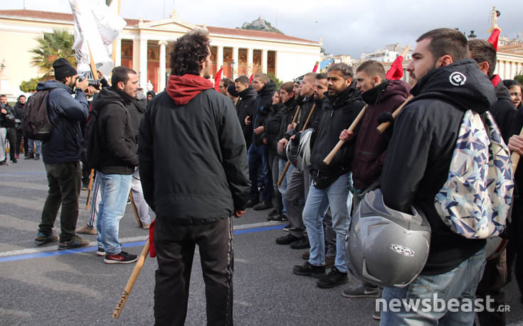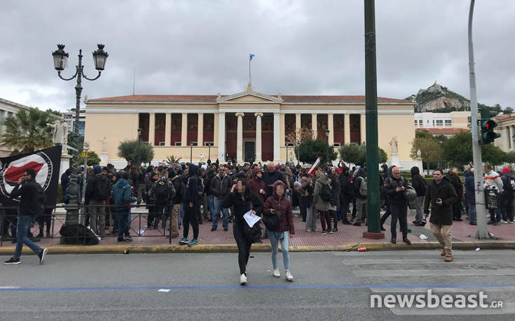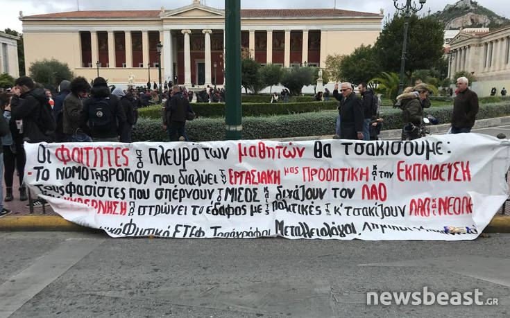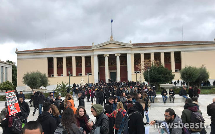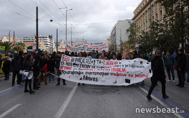 Μαθητική συγκέντρωση η οποία θα καταλήξει σε πορεία στο κέντρο της Αθήνας, πραγματοποιείται στο χώρο των Προπυλαίων, ενάντια στις ανακοινωμένες μαθητικές κινητοποιήσεις στην Αθήνα και άλλες πόλεις για το Μακεδονικό και «άλλα εθνικά θέματα» όπως αναφέρουν.