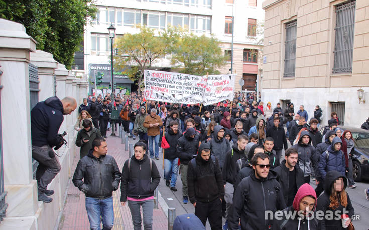 Στα προπύλαια εκτός από τους μαθητές βρίσκονται και φοιτητικοί σύλλογοι καθώς και αντιεξουσιαστικές συλλογικότητες.