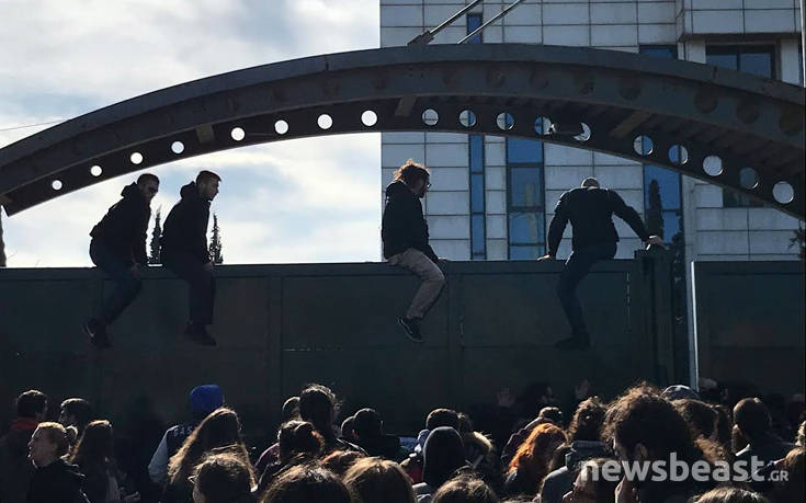 Πριν λίγο οι φοιτητές επιχείρησαν να μπουν στο υπουργείο Παιδείας από μικρό άνοιγμα στην πύλη, και όταν επιχειρήθηκε να κλείσει φώναζαν «θέλετε νεκρό στην πόρτα του υπουργείου;», ενώ στη συνέχεια ορισμένοι ανέβηκαν πάνω στις συρόμενες πόρτες.