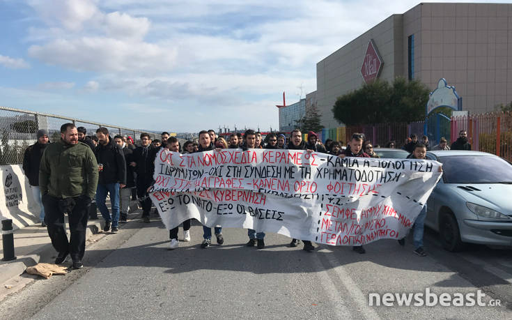 Στη μέσα πλευρά υπάρχουν δυνάμεις των ΜΑΤ σε απόσταση όμως από την πύλη και χωρίς να έχουν επέμβει.