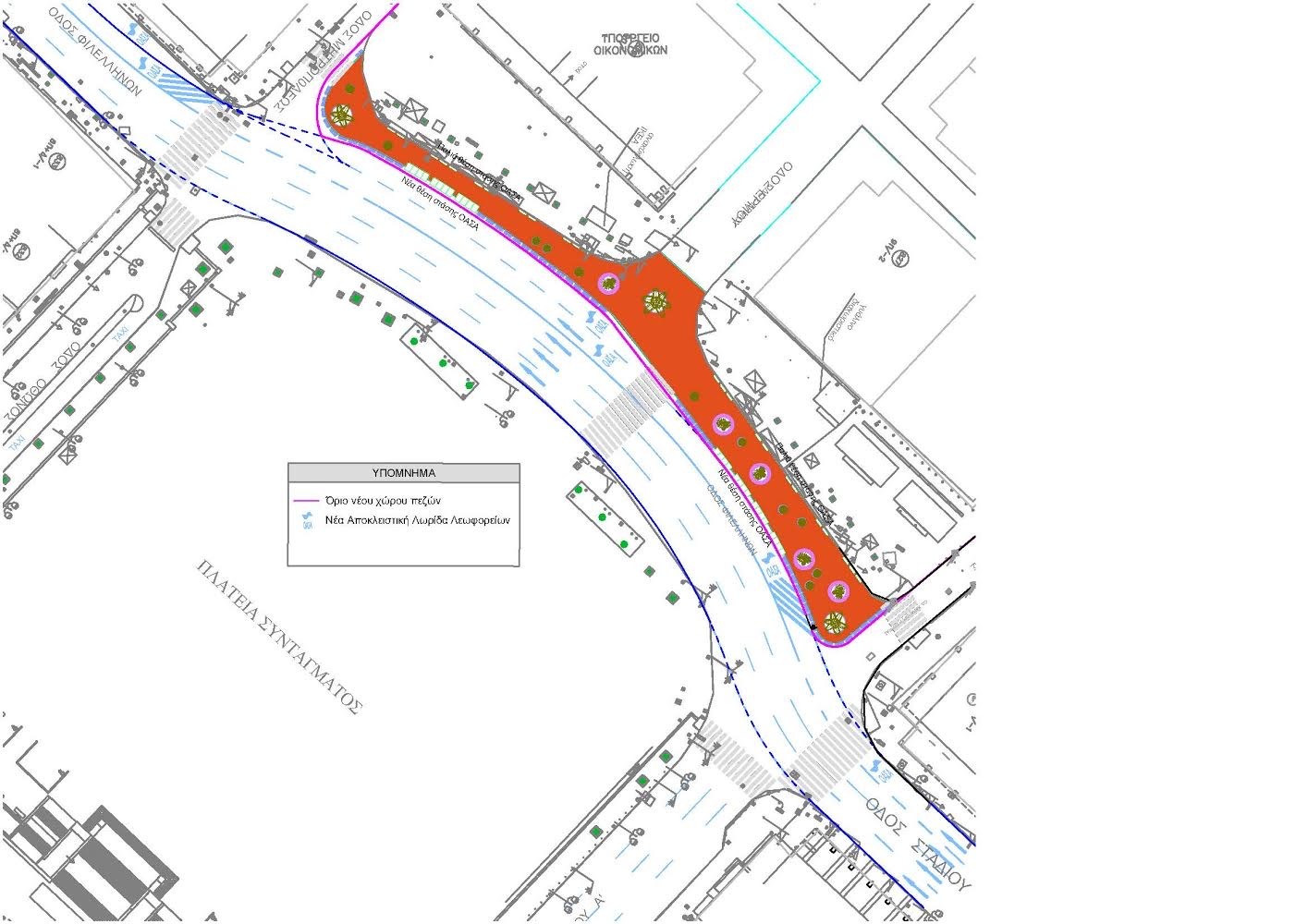 Με αυτές τις ρυθμίσεις, η κυκλοφοριακή λειτουργία δεν μεταβάλλεται, ενώ διασφαλίζεται η ροή των οχημάτων που εισέρχονται από τις οδούς Σταδίου και Βασ. Γεωργίου Α’, προς την οδό Φιλελλήνων, με δυνατότητα δεξιάς στροφής προς την οδό Μητροπόλεως και αριστερής στροφής προς την οδό Όθωνος, όπως ακριβώς και σήμερα.