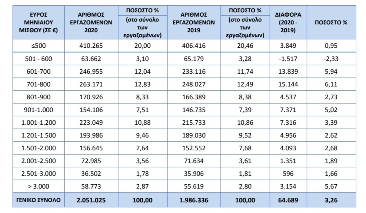 – 223.049 εργαζόμενοι έλαβαν το 2020 μηνιαίο μισθό 1001-1.200 ευρώ.