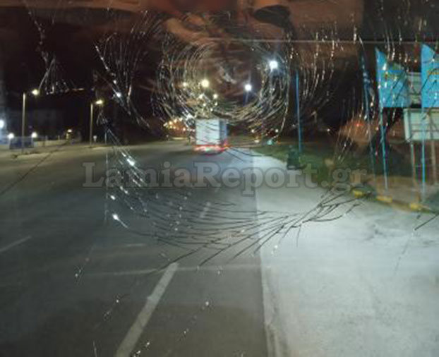 Από το σημείο όπου βρίσκεται το «κουφάρι» των παλιών Goody’s, «άγνωστοι» εκτόξευσαν πέτρα που βρήκε το φορτηγό στο παρμπρίζ. Όπως φαίνεται και στις φωτογραφίες έχουν σημαδέψει το παρμπρίζ στο ύψος που βρίσκεται το κεφάλι του οδηγού!